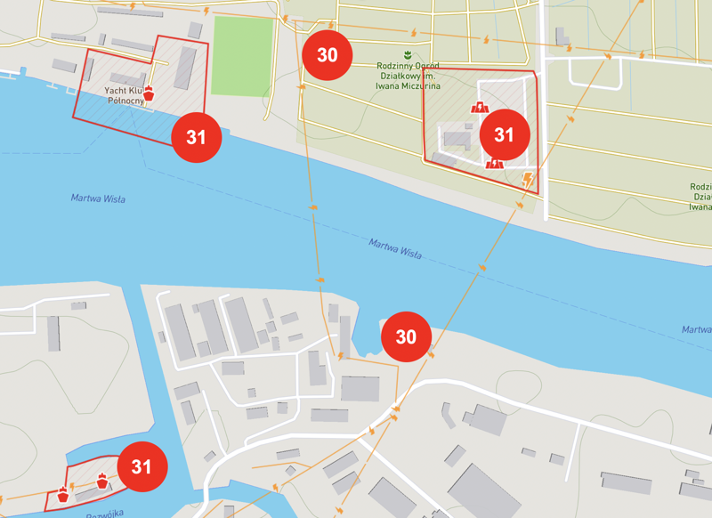 - Śluzy / Locks – Inne urządzenia na otwartym terenie, których zniszczenie lub uszkodzenie może stanowić zagrożenie dla życia lub zdrowia ludzi, środowiska, albo spowodować poważne straty materialne