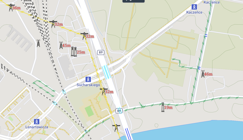Warstwa zawiera informacje o znanych przeszkodach (maszty, słupy, kominy, itd.). Uwaga! Podkreślamy słowo znanych, bowiem tylko tych które zostały spisane w oficjalnych źródłach. Jeśli ktoś postawi sobie np. maszt , to bez uprzedniej aktualizacji oficjalnej bazy danych topograficznych, informacja o nim nie znajdzie się w naszej bazie. Dlatego, pomimo tego, że bardzo byśmy chcieli i dokładamy wszelkich możliwych starań, aby dane były aktualne, pamiętajcie, że w rzeczywistości zawsze może pojawić się przeszkoda, o której nie widzieliśmy. Liniami zaznaczmy również przeszkody liniowe, czyli np.: linie energetyczne. Przy większości obiektów publikujemy jego wysokość. Staramy się, aby bazę przeszkód nieustannie aktualizować.